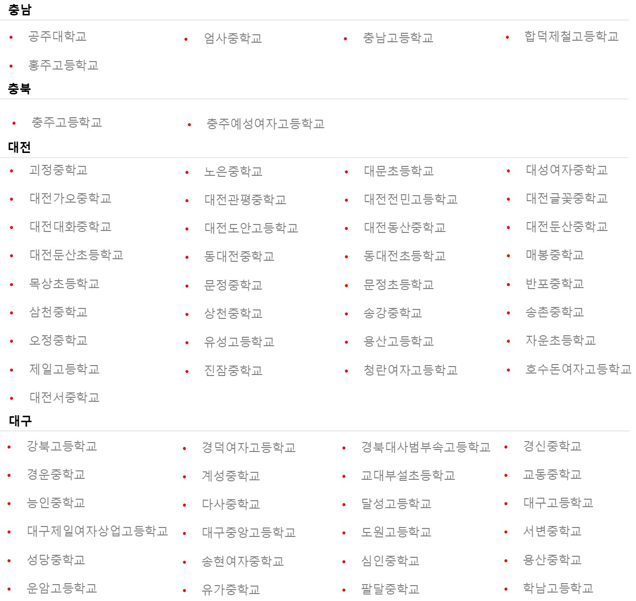 Chungnam / Chungbuk / Daejeon / Daegu