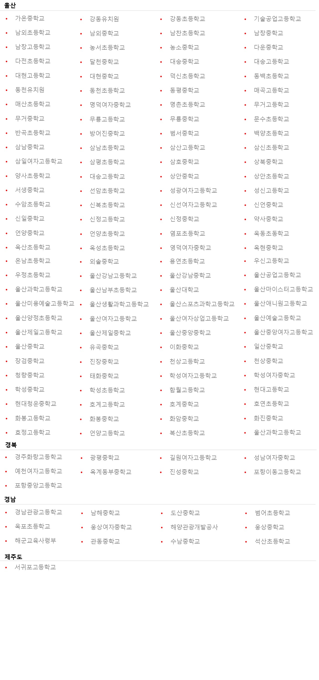 Ulsan / Gyeongnam / Gyeongbuk / Jeju